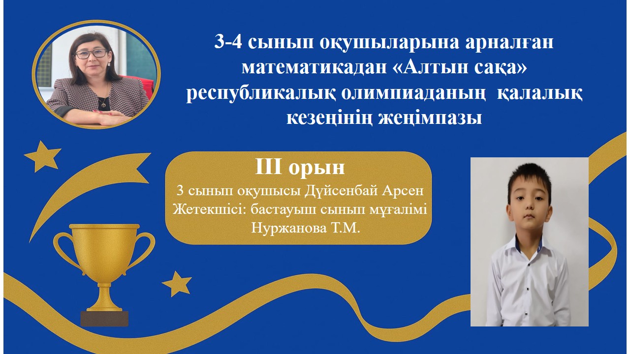 14 қараша күні 3 - 4 сыныптар арасында математикадан "Алтын сақа" республикалық олимпиаданың қалалық кезеңінің жеңімпаздарын құттықтаймыз!